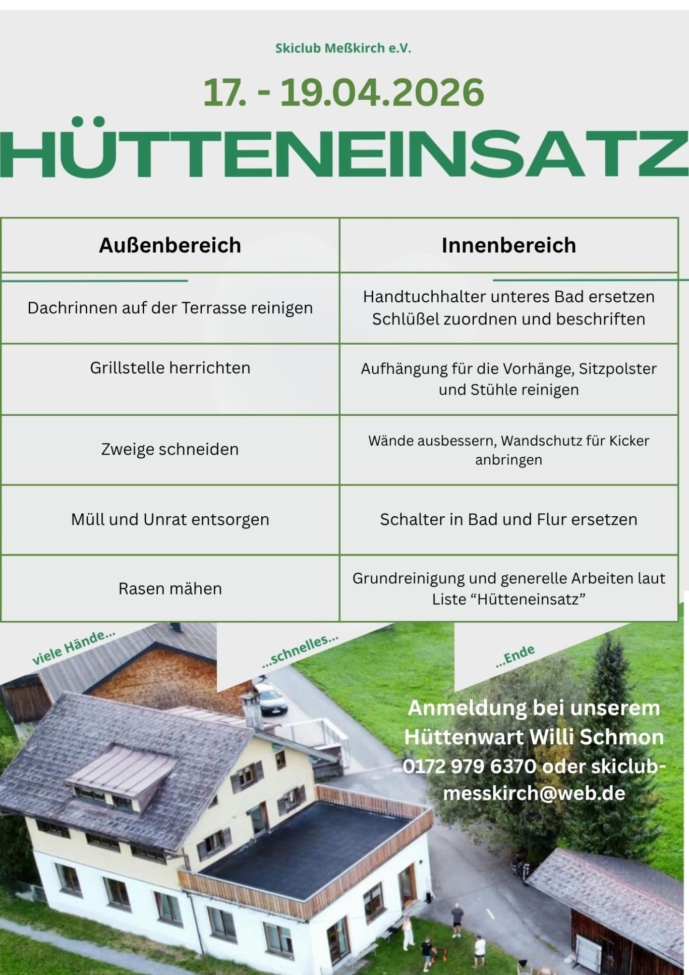 HÜTTENEINSATZ FRÜHJAHR 2026